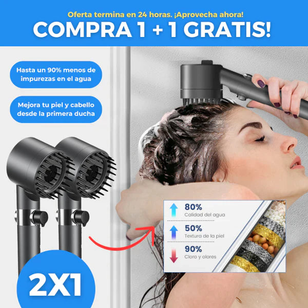 Las alcachofas de ducha de MEKO con manguera vienen equipadas con un potente sistema de filtración de 15 etapas, que incluye carbón activado de alta calidad y vitamina C para proteger su piel y su cabello.